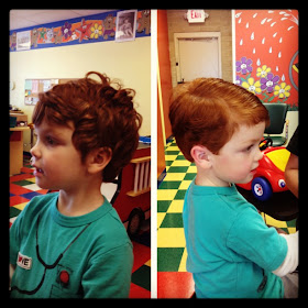 Oh little hair cut #2 in prep for baby bro & Easter 2013.  Could just eat him up!!  Mr. Sandy blond / golden haired / strawberry brunette.