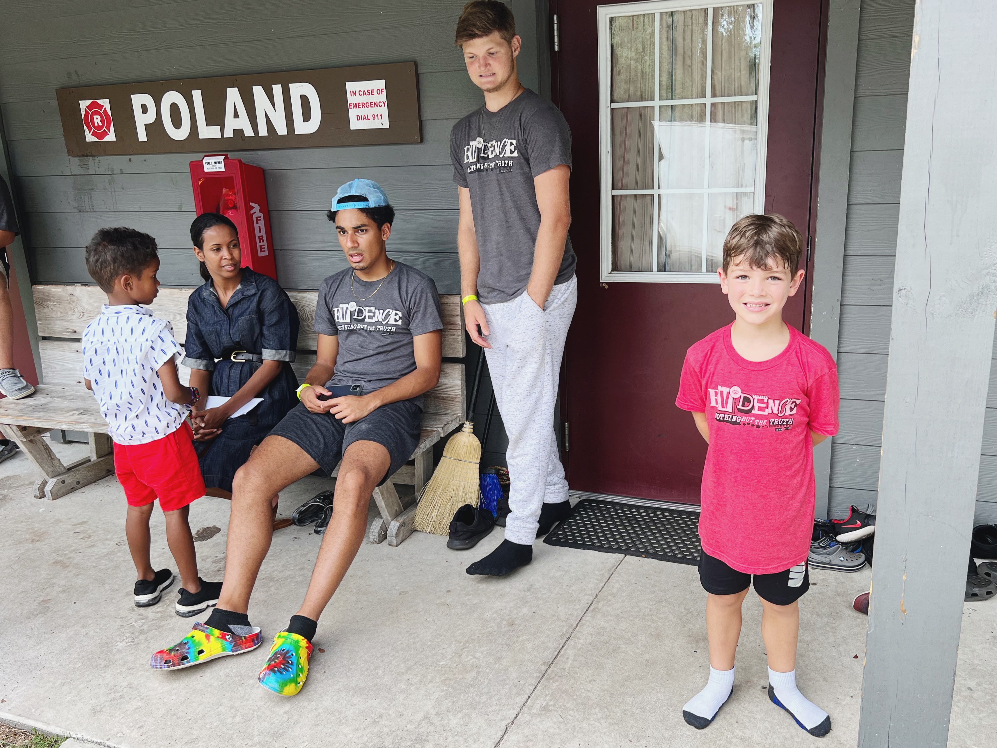 David was excited to get to his cabin. He was a day camper, but he still brought a sleeping bag to keep in his cabin for any time they may need to spend inside. Poland Right!